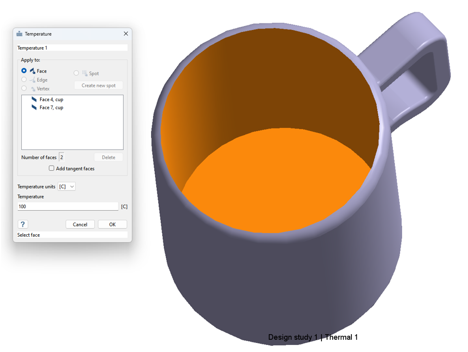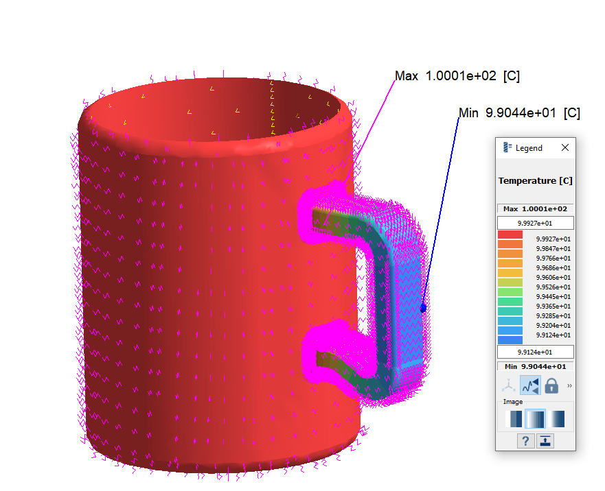 チュートリアルレベル:初級カップモデル上で熱解析を実行します。