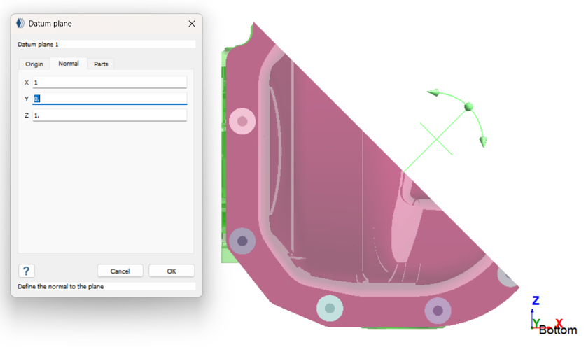 Tip: データム平面をXZ平面に沿って45度にするには、XとZに1を入力します。