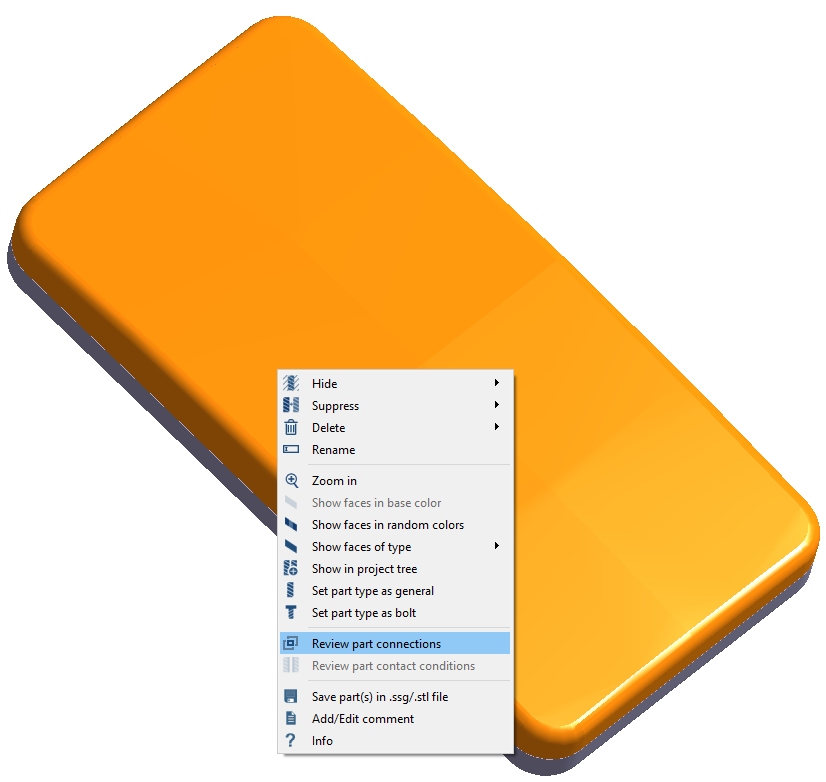 モデリングウィンドウで、図 2にオレンジ色でハイライトされているパートを選択します。