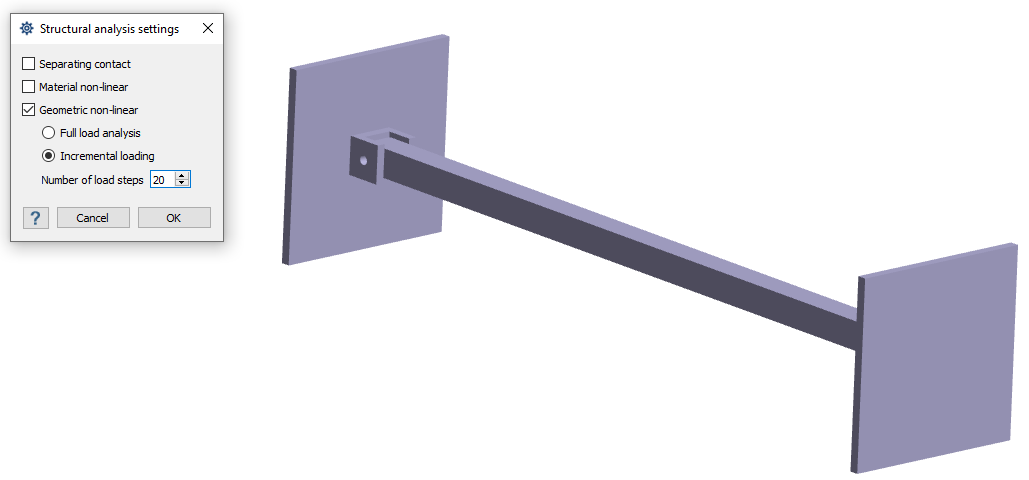 - ダイアログで、幾何学非線形解析チェックボックスをオンにします。