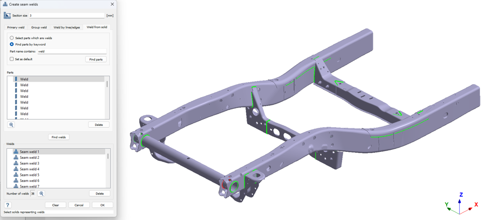 - シーム溶接の作成ダイアログで、キーワードでパートを検索ラジオボタンを選択します。