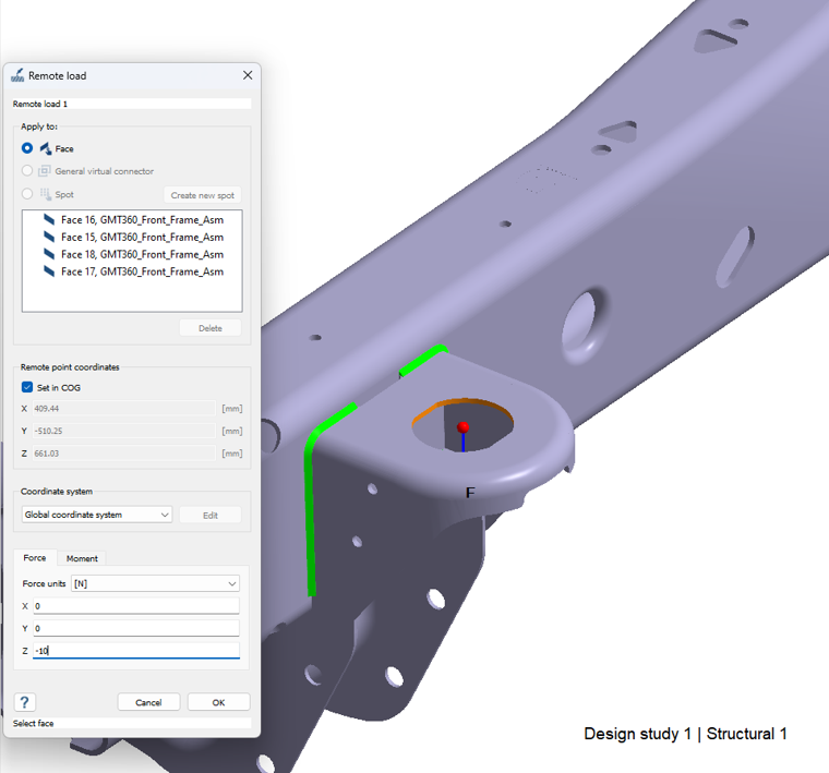 リモート荷重をクリックします。