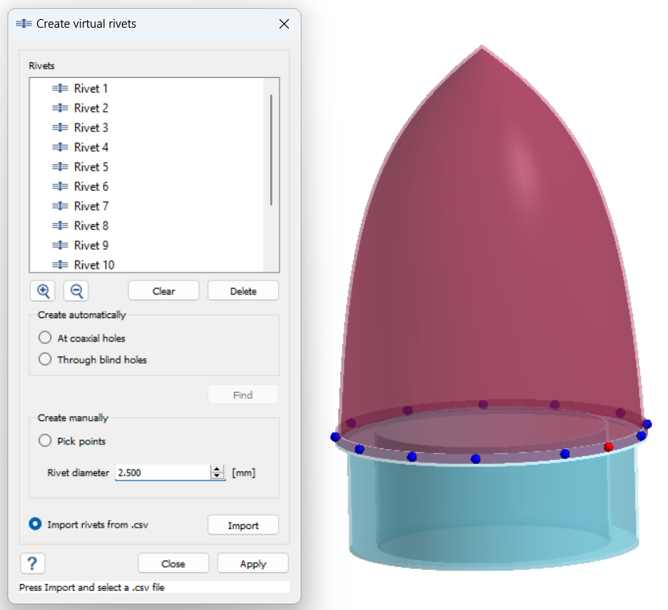- CSVインポートおよびグラフィック上でピックすることによってリベットを作成する方法を学びます。