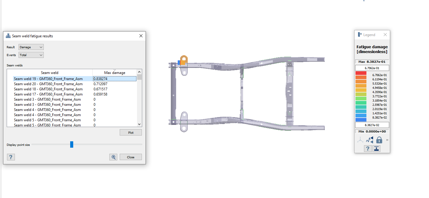 プロットをクリックすると、溶接長さに沿った損傷のプロットが表示されます。