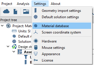 SN曲線がすでに割り当てられている場合は、この手順をスキップしてください。プロジェクトツリーでアセンブリを右クリックし、を選択して、割り当てられた材料特性を確認します。