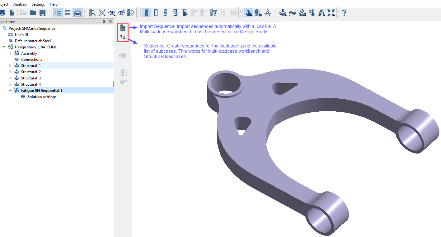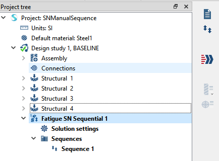 プロジェクトツリーにシーケンスが表示されます。SN連続荷重ケースごとに複数のシーケンスを作成できます。