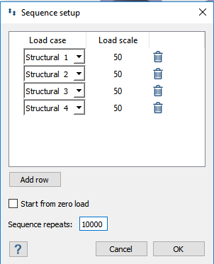 シーケンス設定ウィンドウで、行の追加をクリックし、図 6に示されている順序で荷重ケースを選択します。