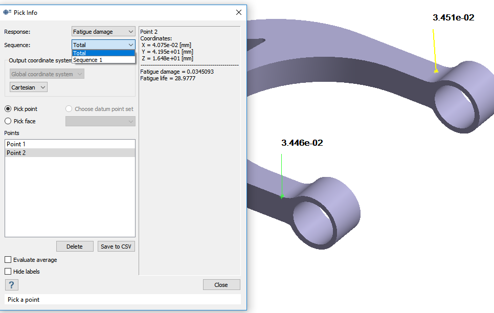 注: 荷重ケースに複数のシーケンスがある場合は、各イベントの損傷をプロットするか、累積損傷をプロットできます。 -