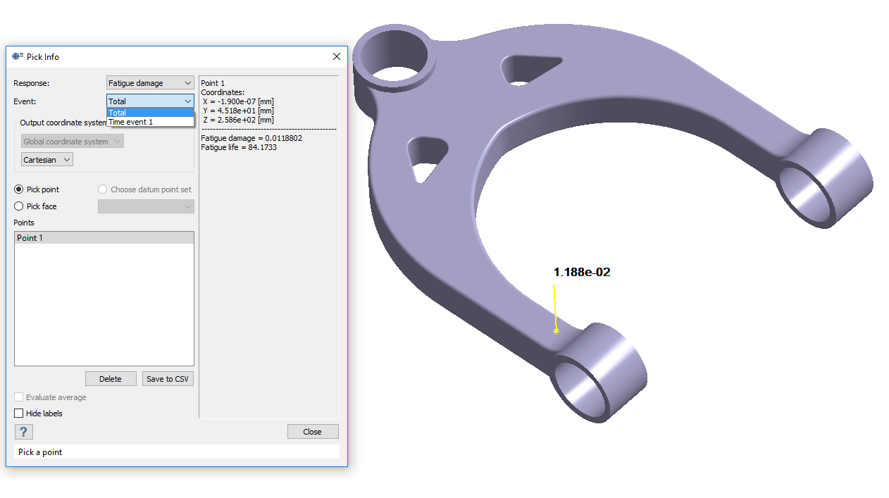 注: 荷重ケースに複数のイベントがある場合は、各イベントの損傷をプロットするか、累積損傷をプロットできます。 -