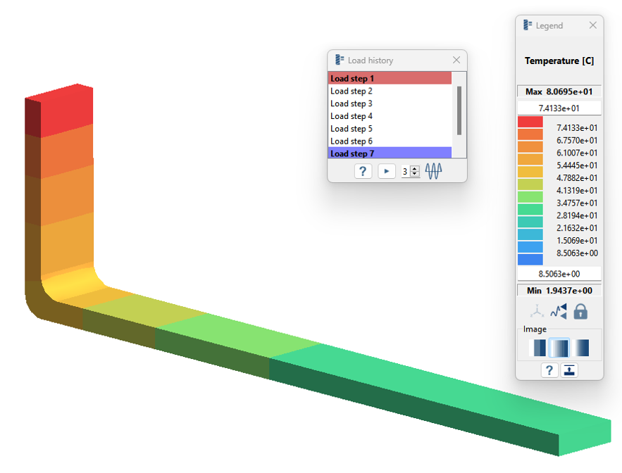 - 荷重履歴ウィンドウでサブケースを選択し、対応する温度プロットを表示します。