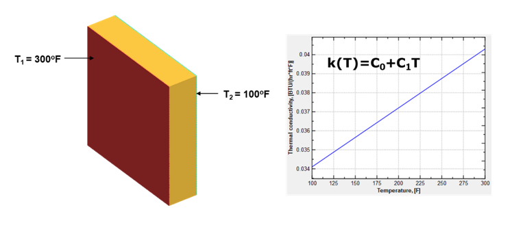 材料の熱伝導率は温度に対して直線的に変化します(k(T)=C0+C1T)