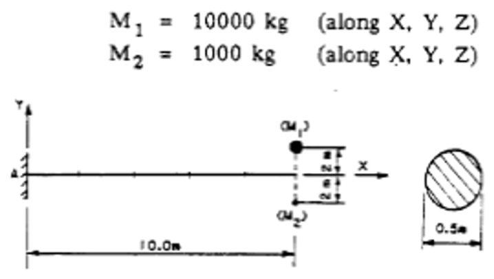 テスト番号VM12 自由端に中心から離れたリモート質量がある片持ち梁の周波数を求めます。
