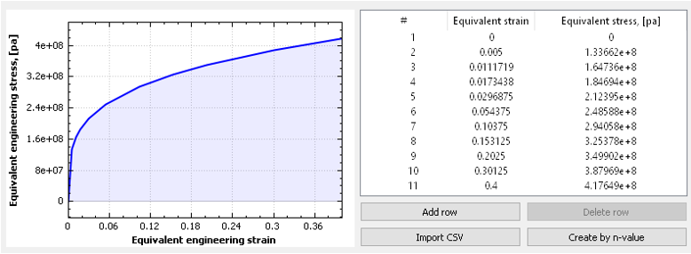 バーの寸法は10 x 10 x 200 mmです。バーの材料のひずみ応力曲線は、べき法則で定義されます: