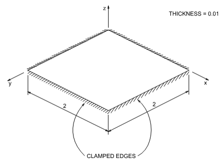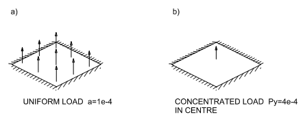 テスト番号VS05 集中荷重と均等な圧力荷重に対する固定された薄板の中心の変位を求めます。