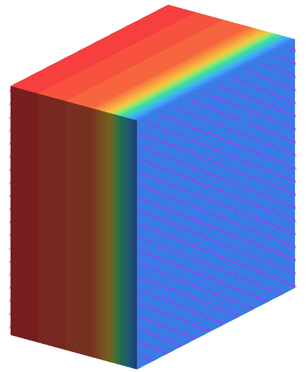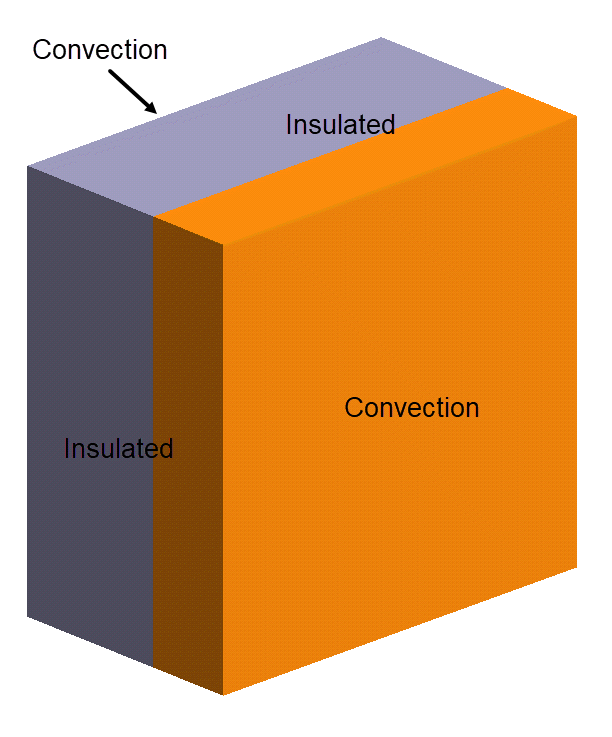 壁は、9 x 24 x 24インチ(耐火レンガ)および5 x 24 x 24インチ(断熱レンガ)の2つのソリッドブロックでシミュレートされます(図 1)。ブロック間の接触熱抵抗は無視されます。ブロックの側面は断熱されており、壁に垂直な方向にのみ熱が伝達されます。