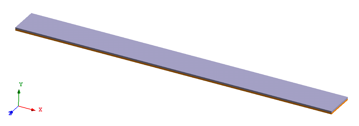 片持ち梁は、異なる金属の2つの等しい厚さの層で構成されています(図 1)。梁は、一方の端の中心線で固定されており(中心線を中心とした移動と回転がゼロに設定されます)、100度Fの均等な温度変化を受けます。