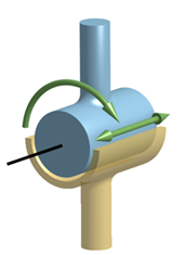 通用接合允许两个轴之间的旋转运动传递,这两个轴彼此成一定角度,并且轴线相交。此接合的工作方式与球形接合相同,但会围绕其轴进行从属的轴旋转。此运动类型需要定义连接的两个轴的接合中心和轴。
