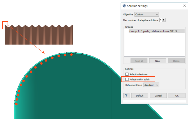 - Adapt to Thin Solids: 应用此设置可增加薄弯曲零件周围的自由度,确保在这些关键区域获得更精确的结果。