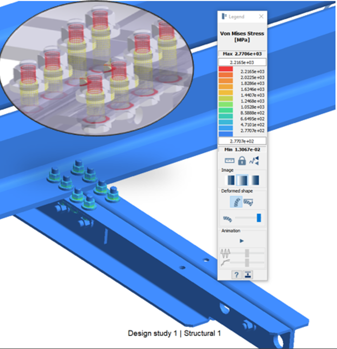 - Bolt contact connections with pretension: 下面的示例说明了不适当的接触条件会产生的影响。