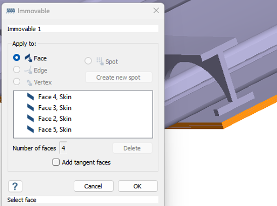 - 在对话框中,确认已选中 Faces 单选按钮。