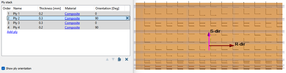 - 要添加板层,请点击板层堆栈部分中的 Add ply。添加 4 个板层