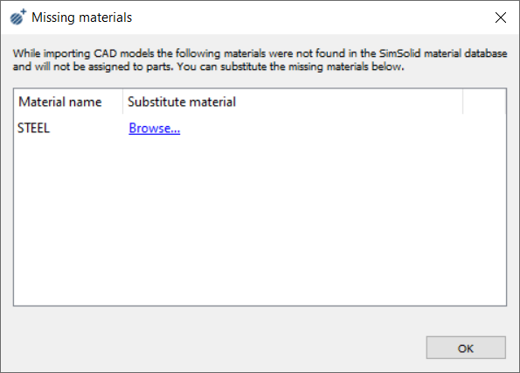 确认名称为 STEEL 的材料在 SimSolid 中可用。