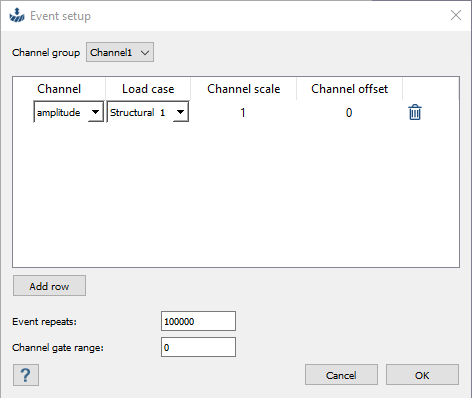 - 在事件设置窗口中,确认通道组已被设置为 Channel1。