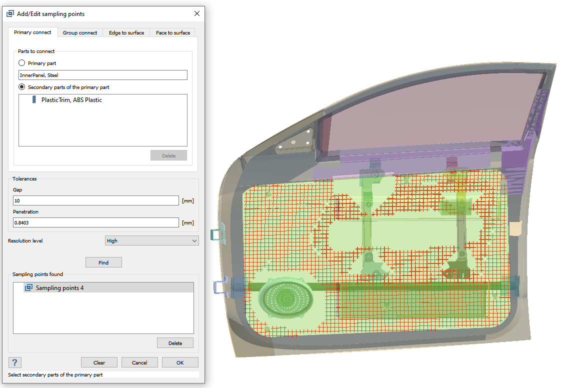 注: 在不影响结果的情况下,可以选择内面板和塑料装饰之间的任何零件作为主零件和副零件。