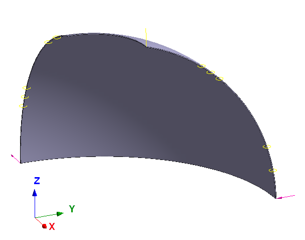 对称条件是通过在与对称平面重合的面上施加滑动边界条件来模拟的(图 2)。在球体外表面的点上施加集中力(图 3)。为了消除刚体沿 Z 轴的运动,球体顶部的一个点被约束在 Z 方向(图 4)。