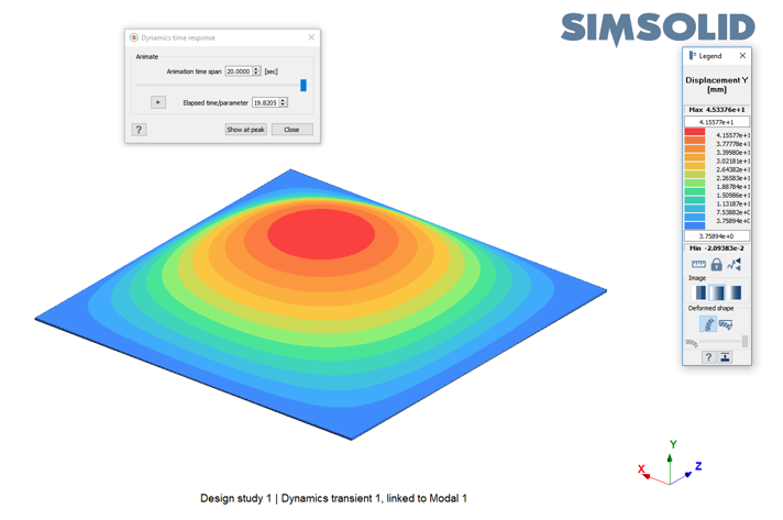 测试编号 VD01 查看受谐波强迫振动的简支方板的瞬态响应。