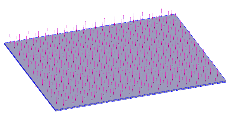 方板被模拟成一个 3D 实体。为了施加铰支座,在板的平面中间处创建了载荷线(图 2)。