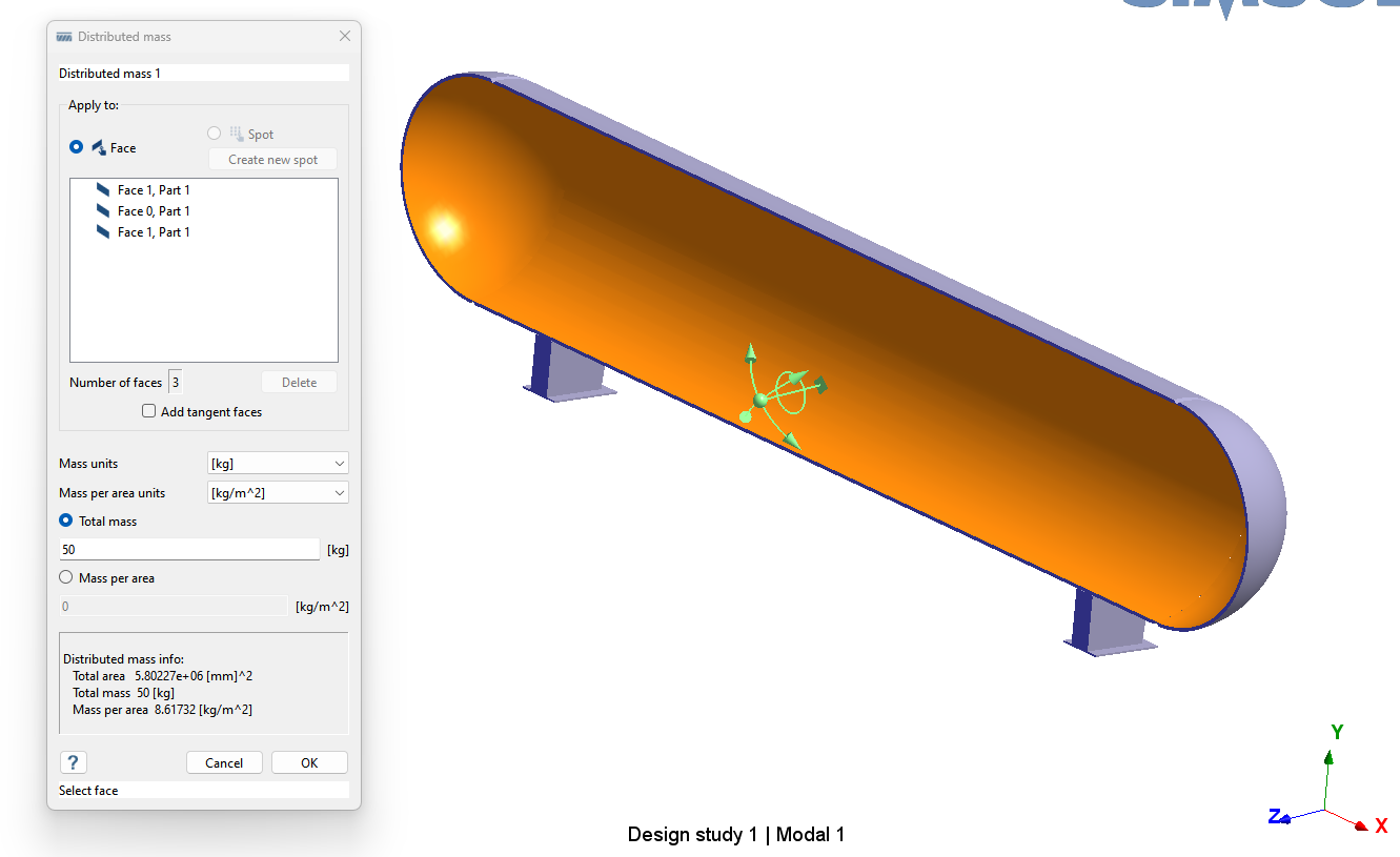 这是施加分布质量的两种方法之一。如果要改为施加单位面积质量,见 选项 2:根据单位面积质量施加分布质量。