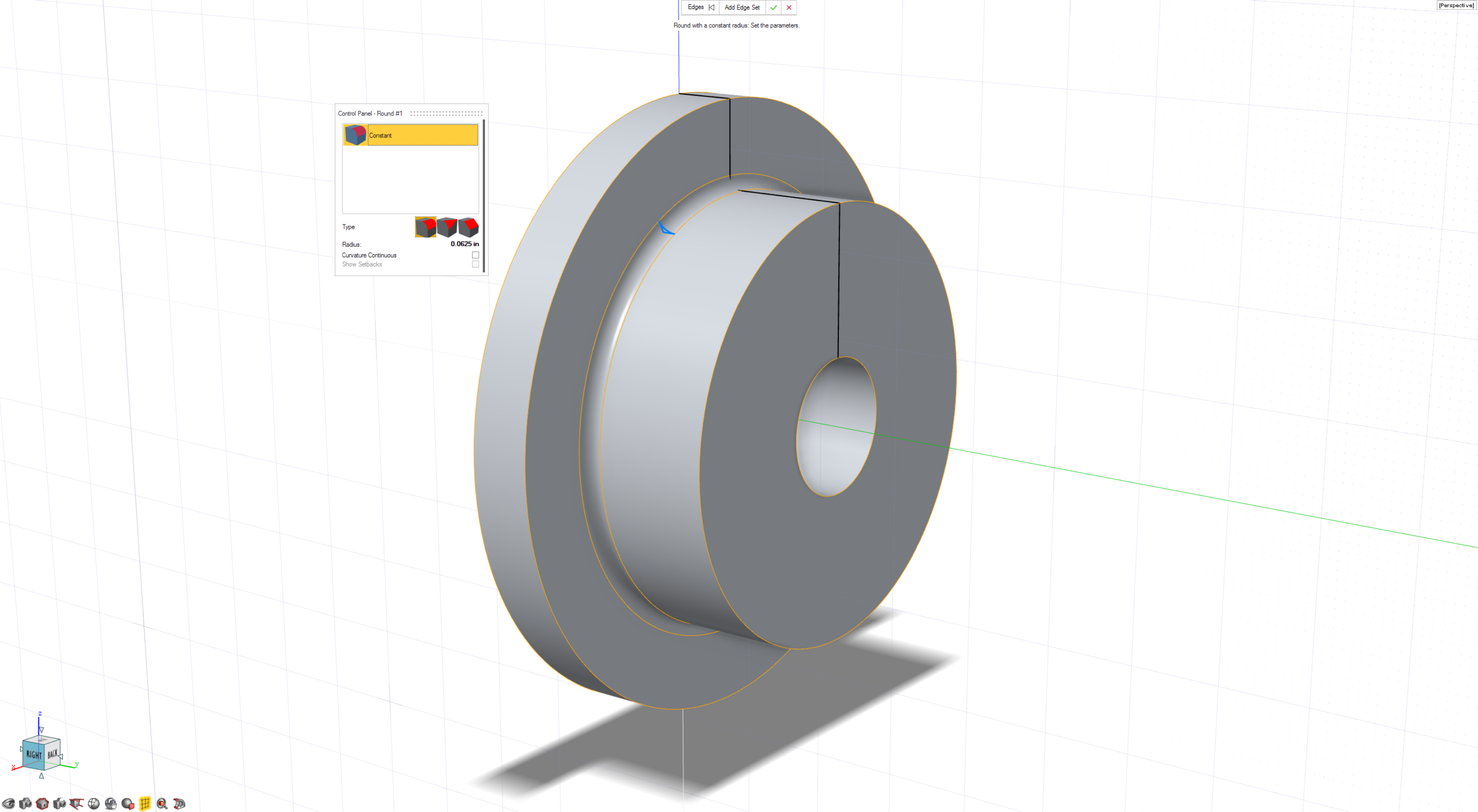 - Right-click in the modeling window and select the Repeat last command option to bring up the Round tool again.