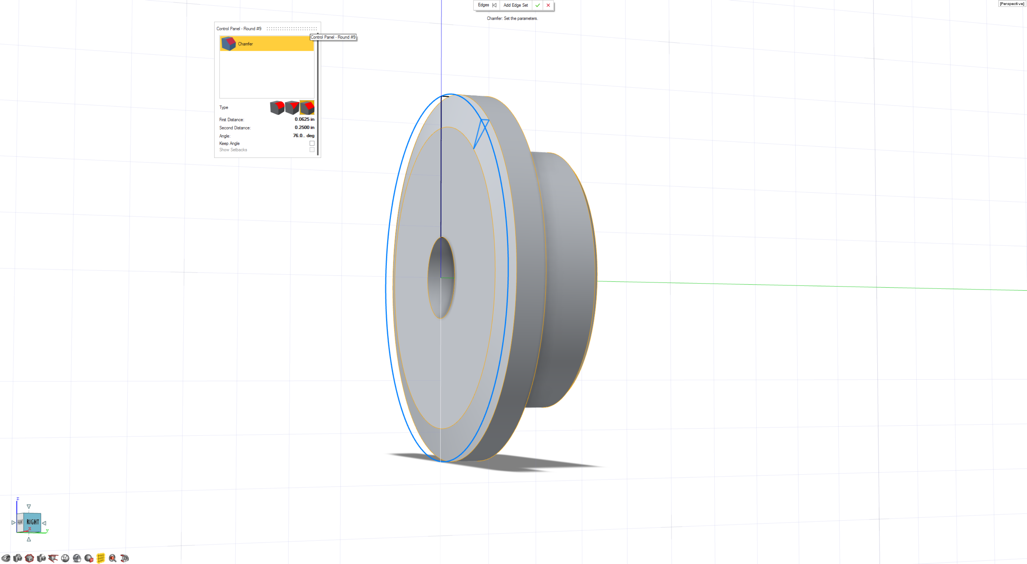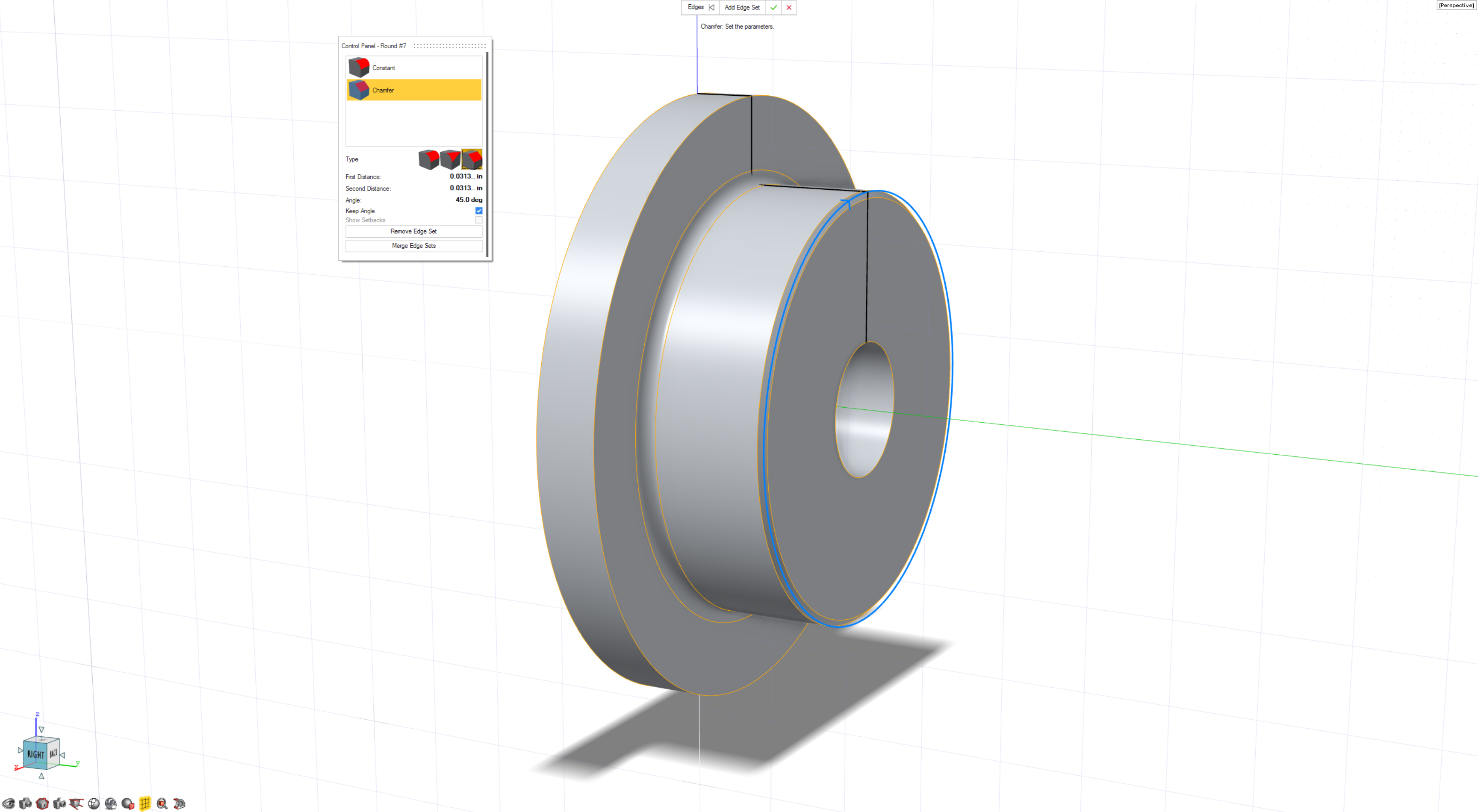 - Right-click to add the edge and change the round type to Chamfer.
