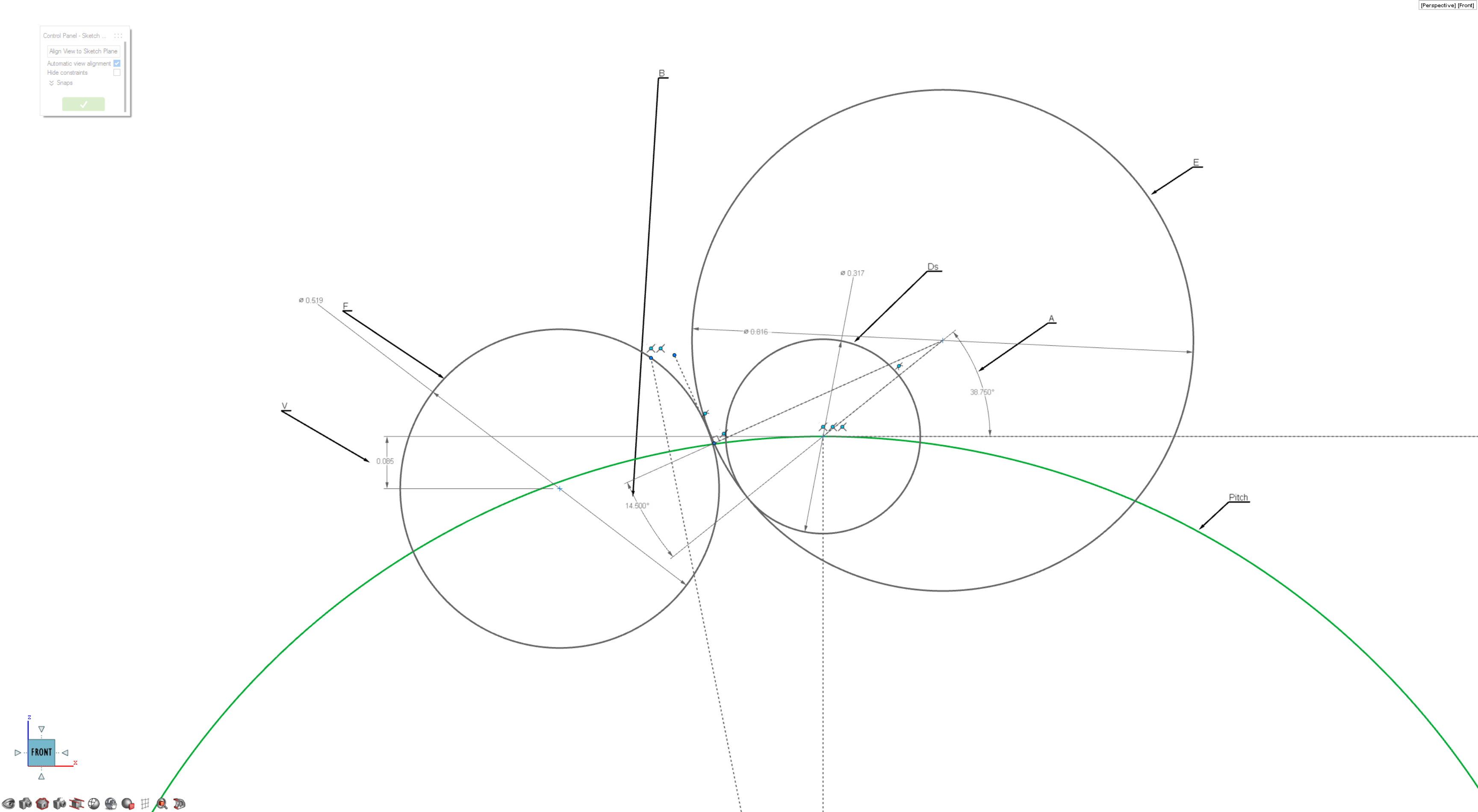 center of the secondary circles that make up the tooth profile. Sketch and