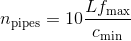 Pipe model with resistive, capacitive and inductive properties. Depending on pipe length, the Highest frequency to be covered and the Lowest speed of sound to be expected during the simulation, the pipe model is subdivided into several sub-pipes (inductive & resistive properties) and volumes (capacitive properties). Estimation of the required number of pipes is based on the following equation: