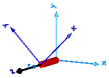 In the following figure the animation of a cylindricaljoint is shown. The light blue coordinate system isframe_a and the dark blue coordinate system isframe_b of the joint. The black arrow is parametervector "n" defining the cylinder axis(here: n = {0,0,1}).