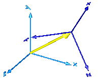 In the following figure the animation of a FreeMotionScalarInitjoint is shown. The light blue coordinate system isframe_a and the dark blue coordinate system isframe_b of the joint.(here: r_rel_a_1(start = 0.5), r_rel_a_2(start = 0), r_rel_a_3(start = 0.5), angle_1(start = 45o), angle_2(start = 45o), angle_3(start = 45o)).