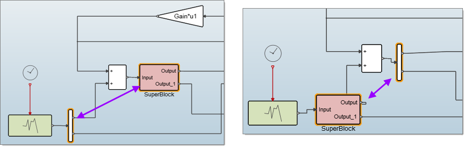 automatically reconnects the blocks in the diagram within the limits of compatibility of