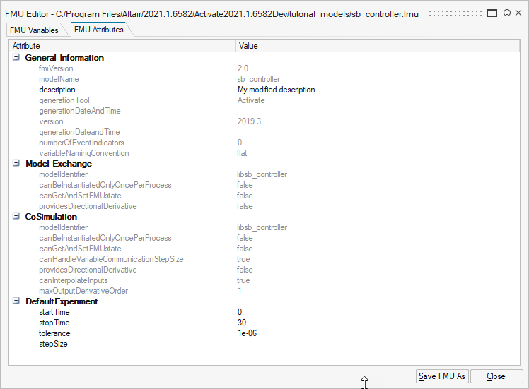 - Modify the FMU attribute descriptions.