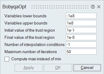 - The interface of the BobyqaOpt block lets you define parameters to optimize your