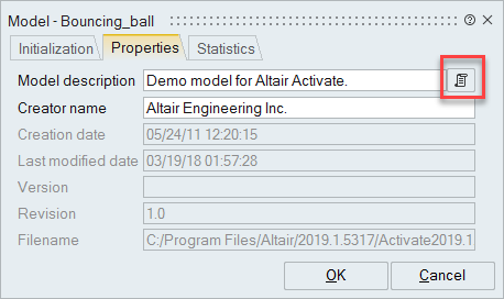 From the Model dialog that opens, select the Properties