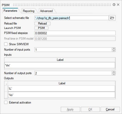 Figure 7. The PSIM block dialog in Twin Activate