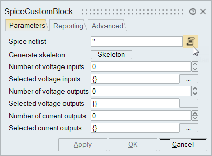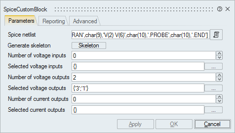 Define electronic components with the SpiceCustomBlock.