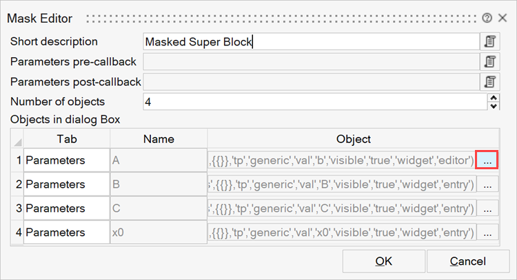 Define parameters in a masked super block.