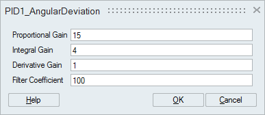 - Select the first PID block. From the Property Editor, select , and enter the name PID1_AngularDeviation.