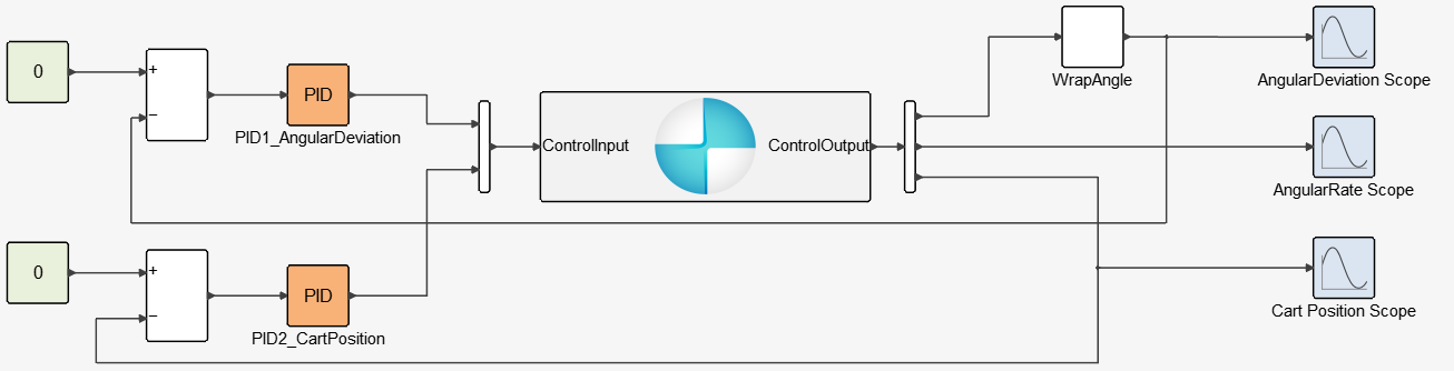 AngularDeviation, AngularRate and CartPosition. Set the Plant Output properties