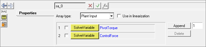 The ControlInput solver array includes both the PivotTorque and ControlForce