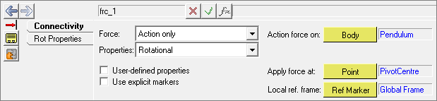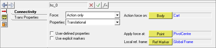 On the Connectivity tab, add the force, frc_0, label it