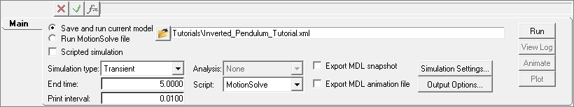 - Select the folder icon, and enter a path and name for saving the MotionSolve model (XML file). The name is your choice, but a good practice is to use the same root name as your MotionView model. The solver run requires the XML file. When entering the path, note that the default directory of the tutorial may not be writable, and you may need to specify a different directory or change the write permissions on the directory.